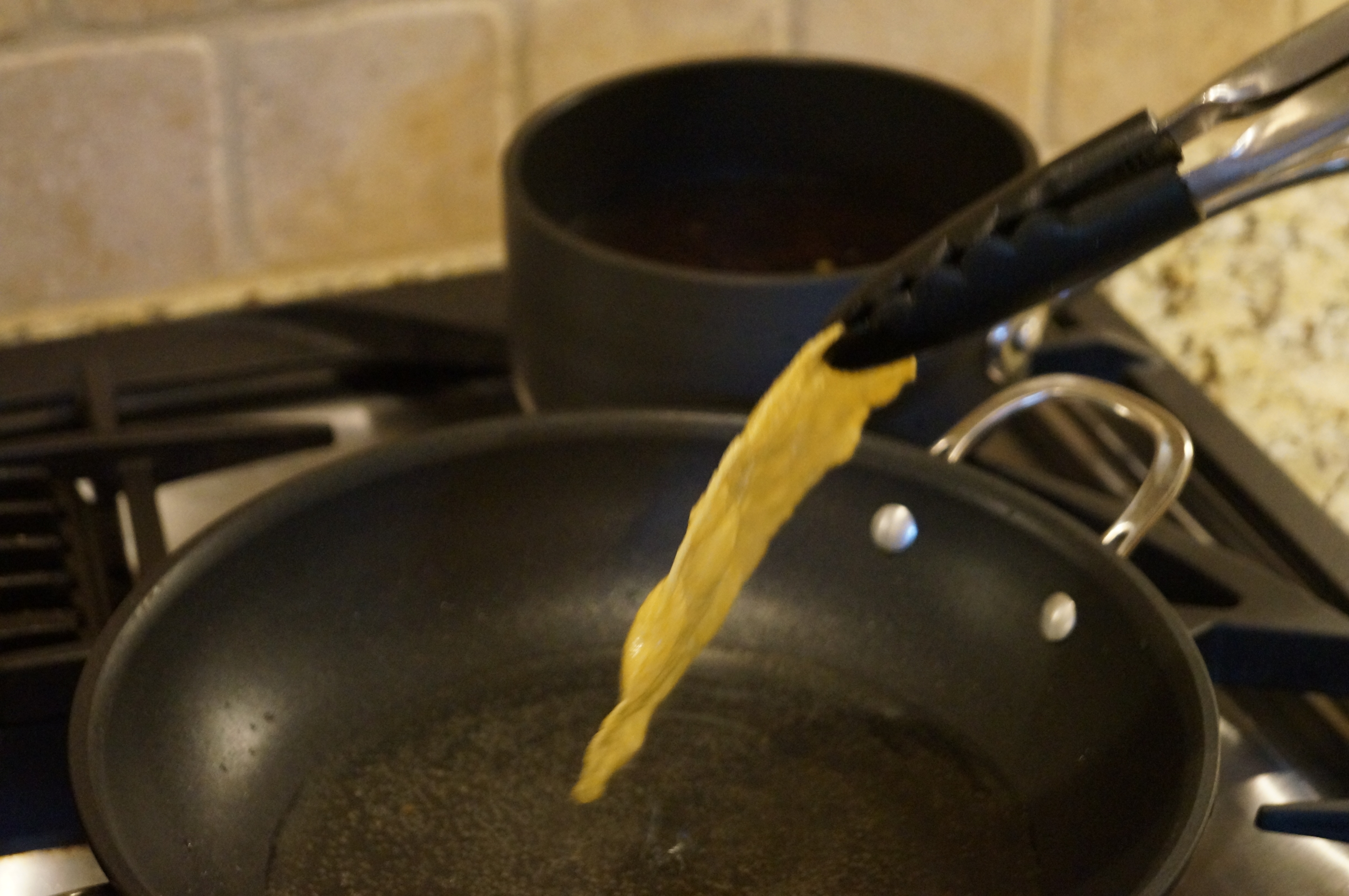 In a small skillet over medium heat, lightly fry the tortillas one at a time in the canola oil just until soft (do not crisp). Drain on paper towels.