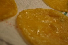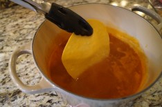Next dip each tortilla in the sauce and place on platter to be assembled.