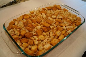 Top with croutons (I crushed them in the bag with my hands a little first) and the remaining cheese. (Next time, I will crush even more)