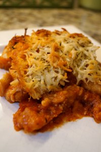 Here you go – Chicken Parmesan Casserole – serve with a salad and Parmesan Knots (see below).