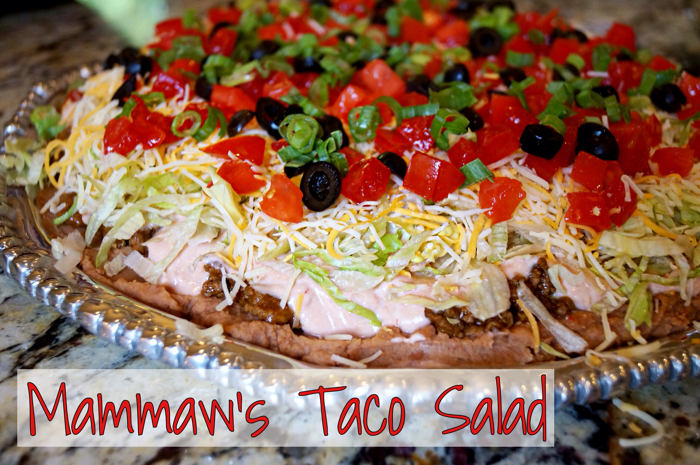 One of my go to favorites is Taco Salad – proudly adapted from my Mammaw. She had it at every holiday dinner (right beside the turkey and dressing) and it was always the first thing to disappear.