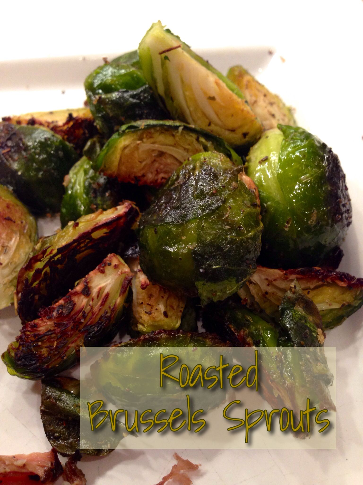 Trim and cut smaller sprouts in half and larger ones in quarters.  Toss in a bowl with other ingredients, coat completely. Place evenly in one layer on a backing sheet lined with foil. Bake for 25 minutes, tossing once halfway through.