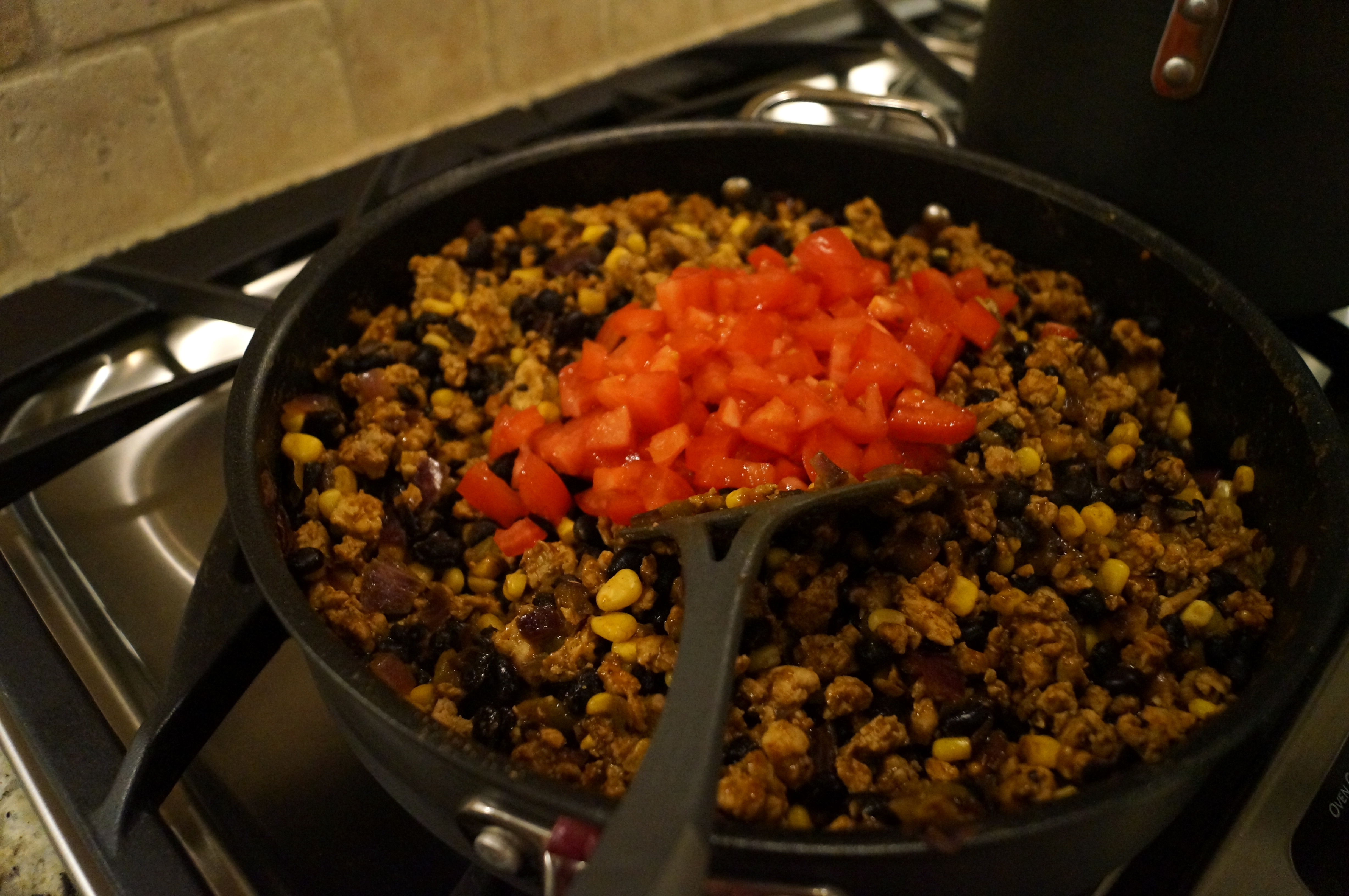 Add diced tomatoes and toss to combine.