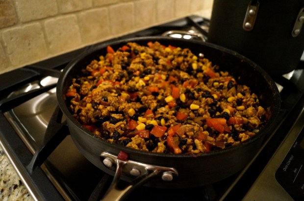 Brown your chicken over medium-high heat. (I must admit, I’m not really a fan of what ground chicken looks like while it’s cooking)