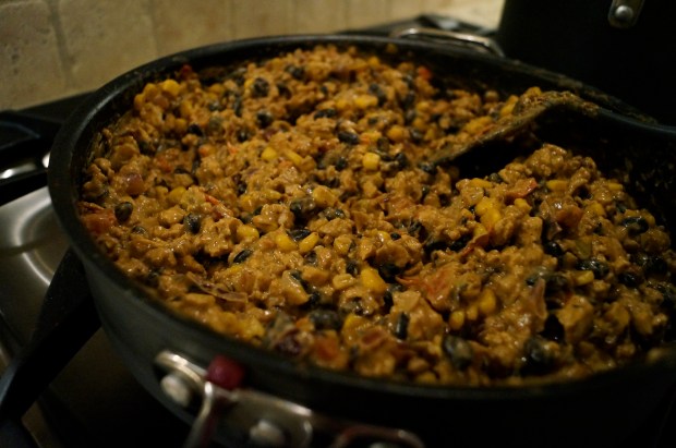 Next add corn, beans, green chilies and salt/pepper to taste. Cook another 5 minutes.