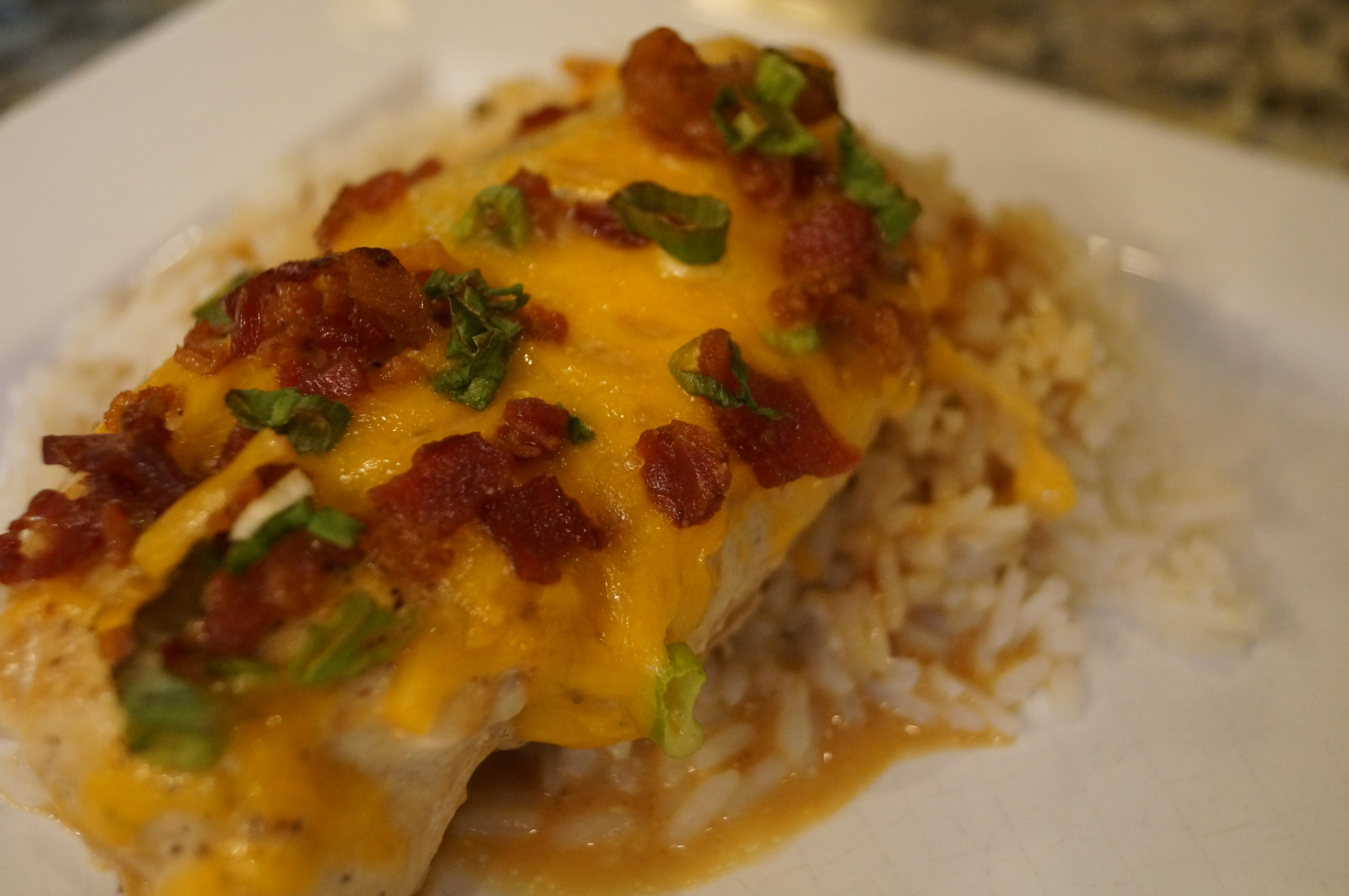 In a large skillet, brown the hambuger meat with 2 of the green onions and garlic. When cooked through, drain excess grease.