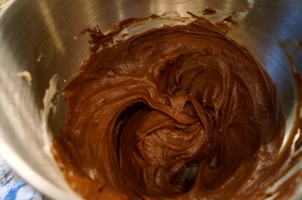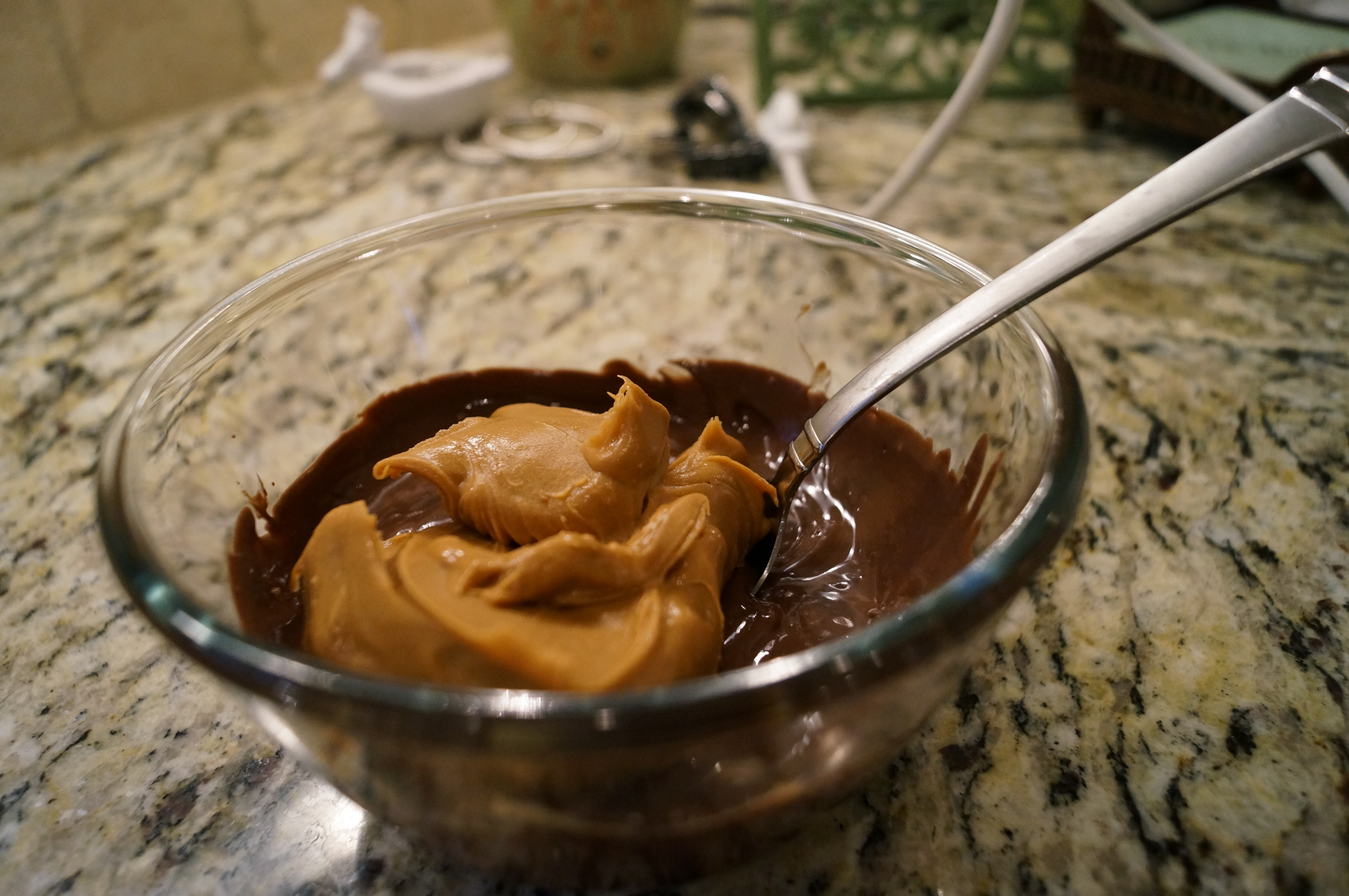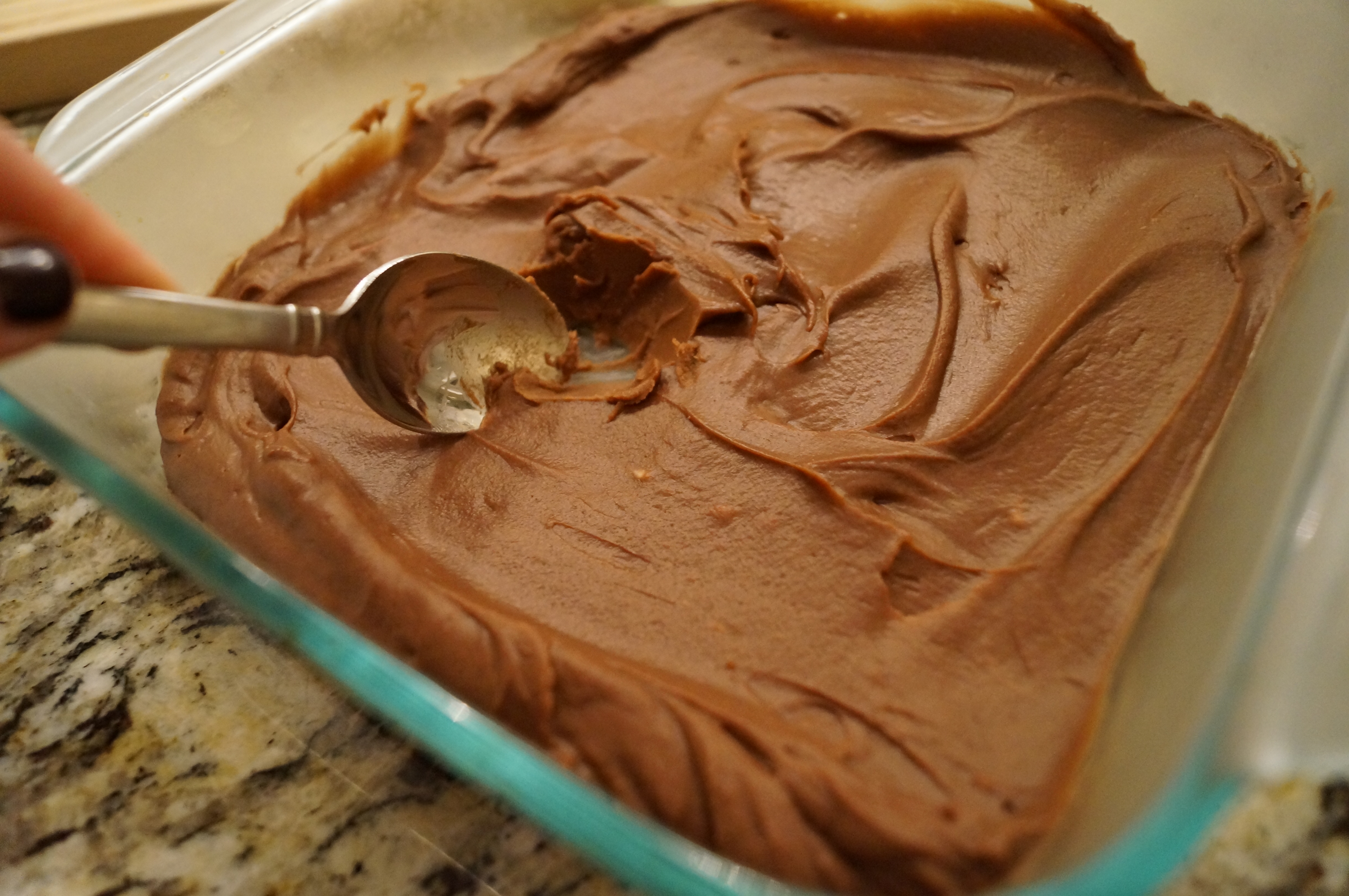 Spread peanut butter mixture evenly over chocolate layer and smooth out to edges.