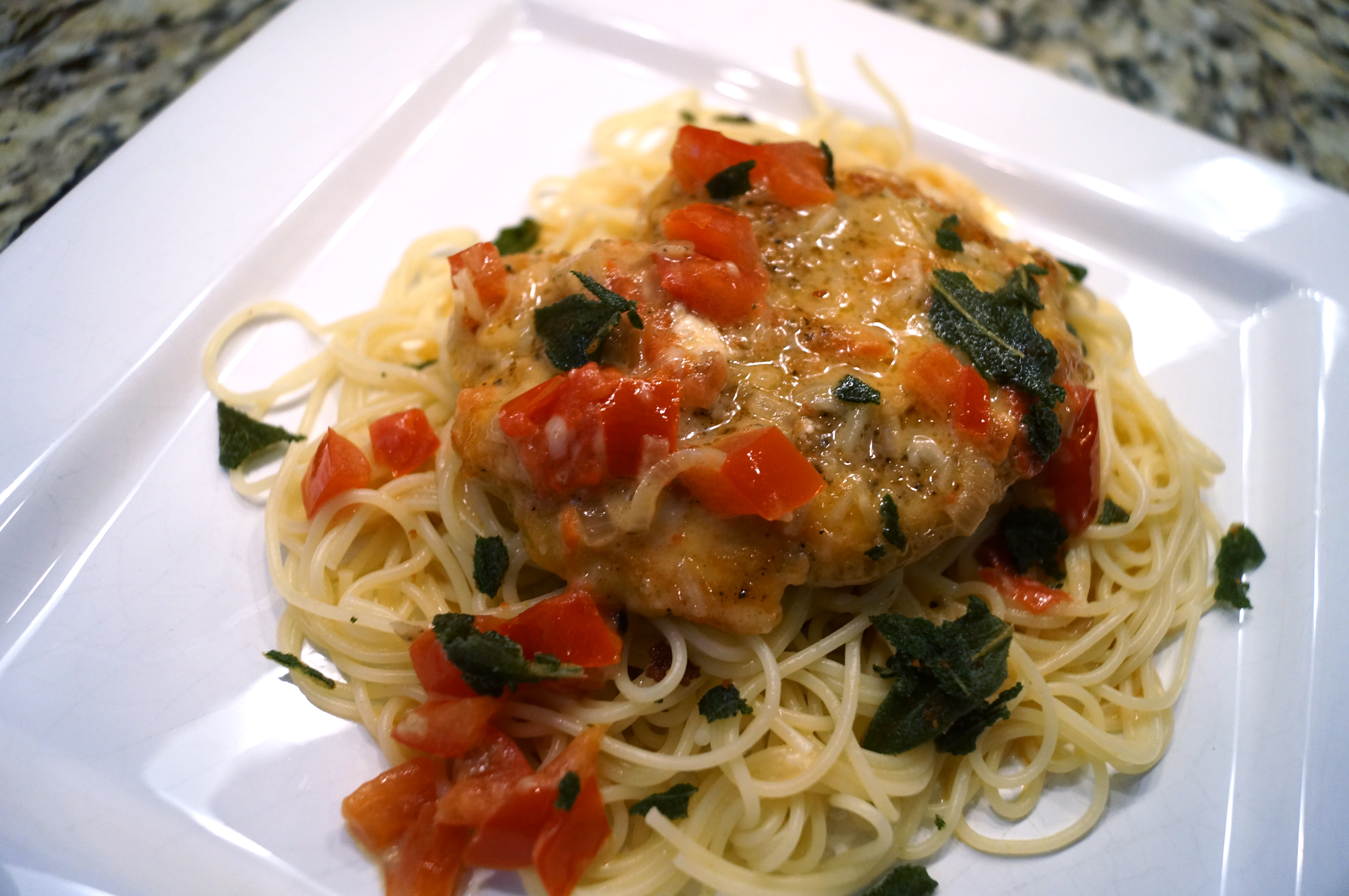 Once cooked add in garlic and cook for 30 seconds or until fragrant. Next, add tomatoes, lemon juice, red pepper, Italian seasoning and the remaining 2 tablespoons of butter. Stir and cook over medium heat for 2-3 minutes.